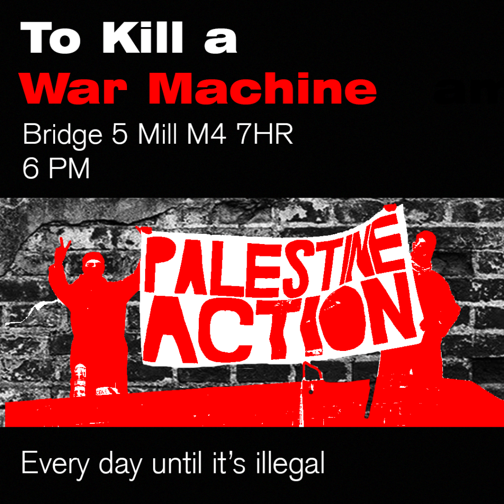 Starting tomorrow evening (Tue 1st July) we will be screening To Kill a War Machine for free every evening from 6pm, until the proscription order comes into effect or is overturned. If Palestine Action are proscribed, even sharing the documentary could become a terror offence, so we want to make sure you get a chance to watch it first. We know who the real terrorists are. Join us to see what actionists actually do and why.